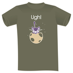 - Color printing on a sold cotton olive shirt.