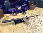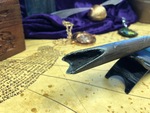 Our 3D printed designs are inspired by Harry Potter. Each wand is hand made and there may be imperfections. This one is a 12.5 inches long and hand painted to look like taupe colored wood with light streaks.
