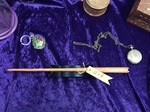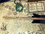 Our 3D printed designs are inspired by Harry Potter. Each wand is hand made and there may be imperfections. This one is a 12.5 inches long and hand painted to look like light wood colored.